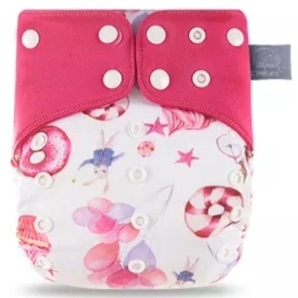 Observação: Possui botões laterais de ajuste para os tamanhos P, M e G, permitindo o uso desde os primeiros meses de vida até o desfralde, uma vez que seus botões de ajustes permitem que a fralda se adeque ao crescimento do bebê.
