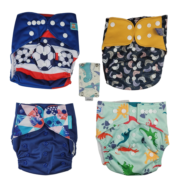 4 Fraldas de Pano (de diferentes marcas: Elinfant, Happy Flute, Littles and Bloomz e Mumsbest)